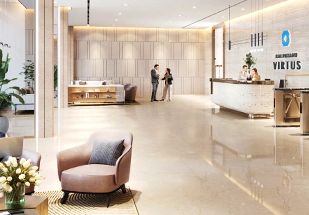 Entrance lobby with waiting lounge and reception Premium Offices Starts from ₹ 1.24 Cr Onwards